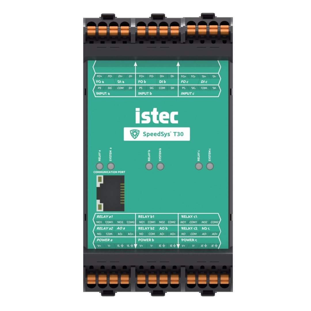 The SpeedSys T30 features triple redundant input channels, making it suitable for speed protection and monitoring.