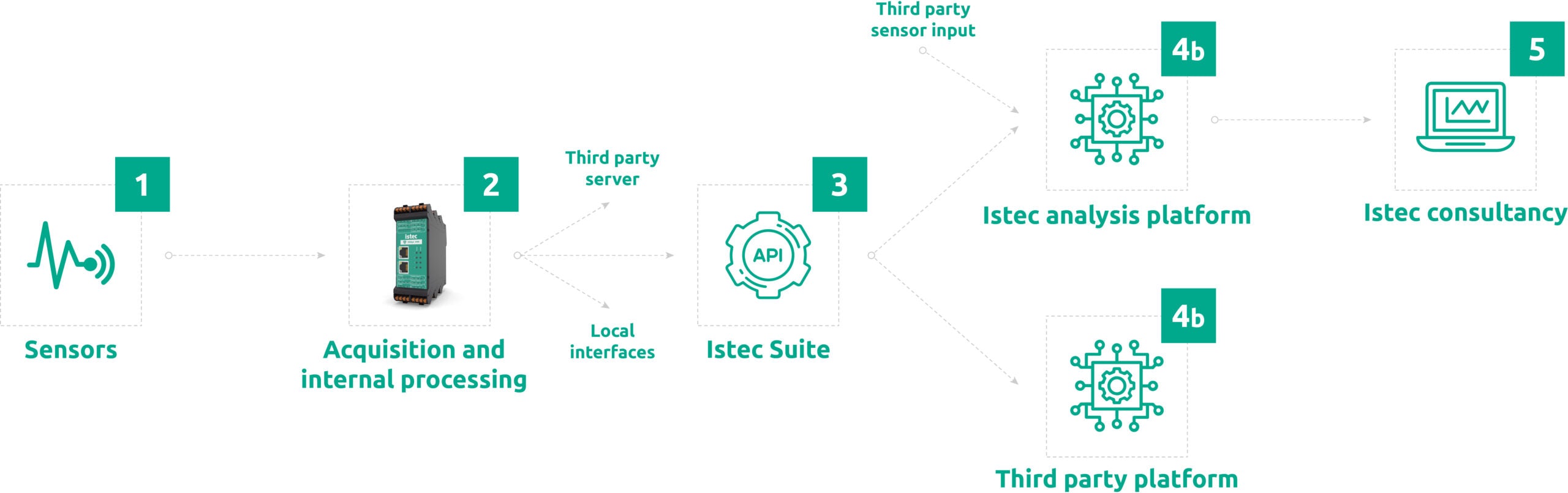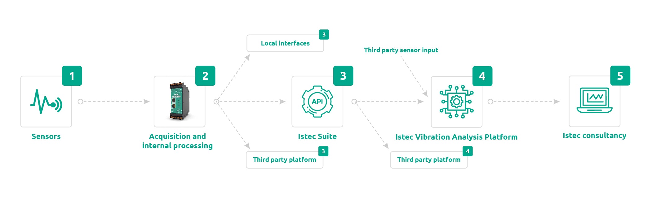 VibSys features an open data infrastructure, allowing to integrate the vibration data with any preferred platform for analysis or data integration, like Istec analysis platform or any third party analysis tool, without the need for proprietary software.
